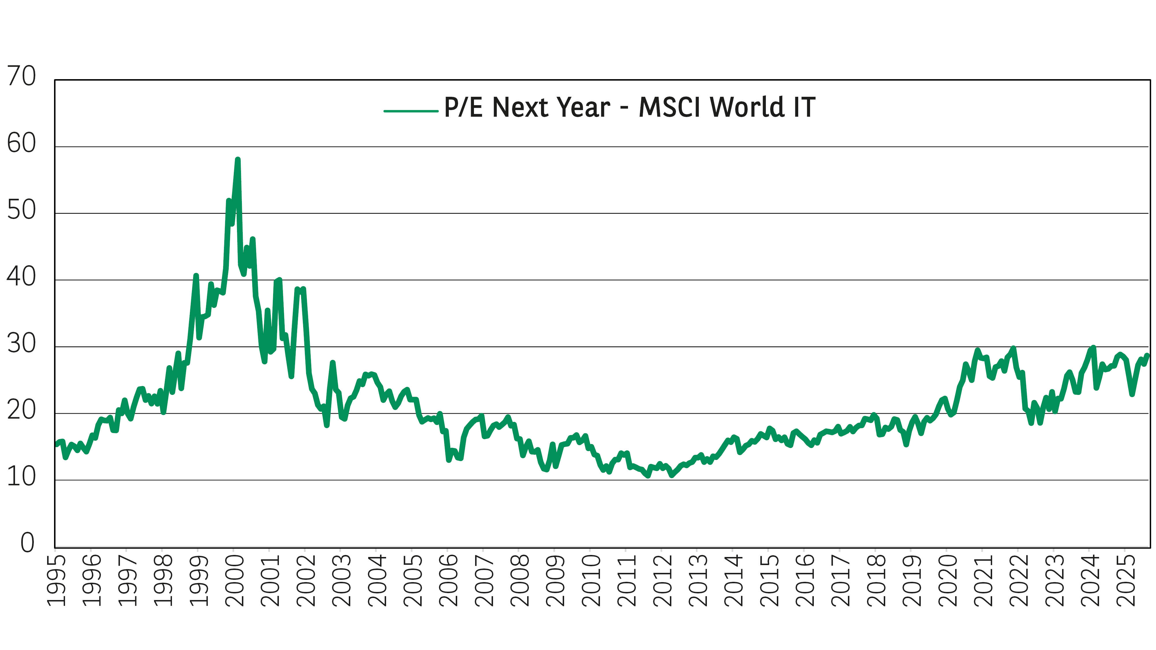 Exhibit 1: Valuations of the MSCI World Information Technology (IT) Index are far from dotcom bubble levels