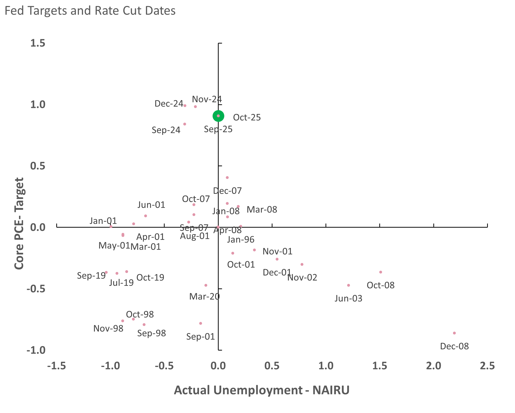 Chart 1 – The Fed’s Dual Mandate and Rate Cutting History