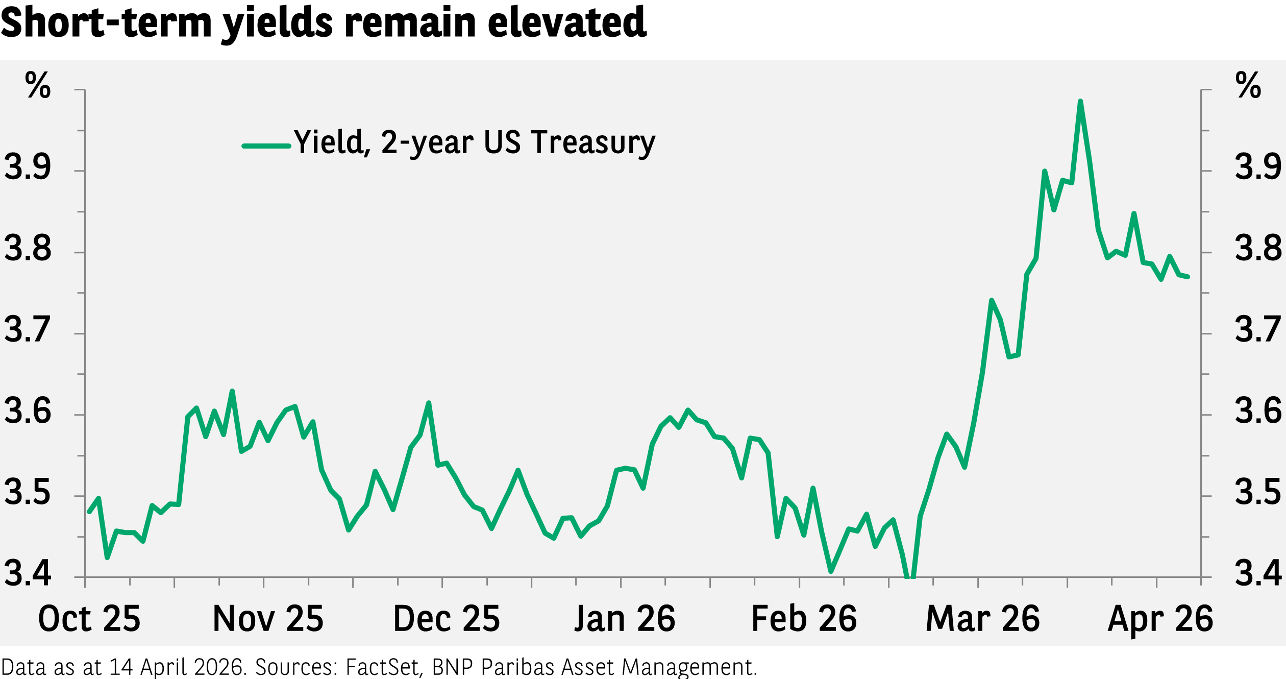 Equity markets have recovered strongly since a two-week ceasefire in the Middle East was announced. Short-dated bond yields have, however, remained high - two-year US Treasury yields are still close to 3.80%. Short-term bond yields are driven by expectations of future central bank interest rate policy. Higher energy prices and the inflation shock have put an end to hopes of looser US monetary policy in 2026. Financial conditions are tightening, which makes things tougher for US consumers and corporates.