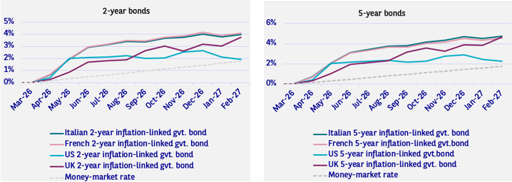 In this context, we favour short-dated inflation-linked bonds, particularly in the eurozone. This segment has proved to provide efficient protection against higher realised inflation while limiting exposure to interest rate swings.
