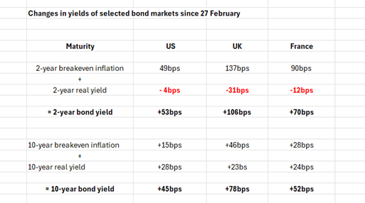 Global bond markets suffered in March as inflation fears created by the Middle East conflict led to a major rise in interest rates.